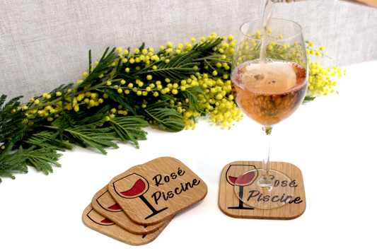 Rosé Piscine - Dessous de verre en bois et résine époxy