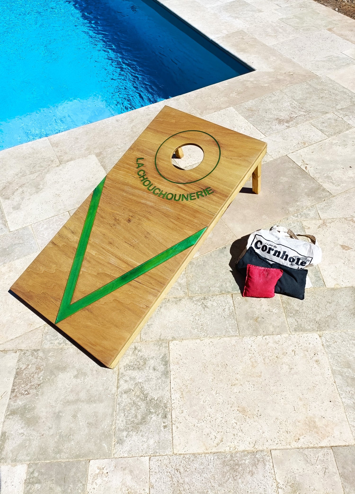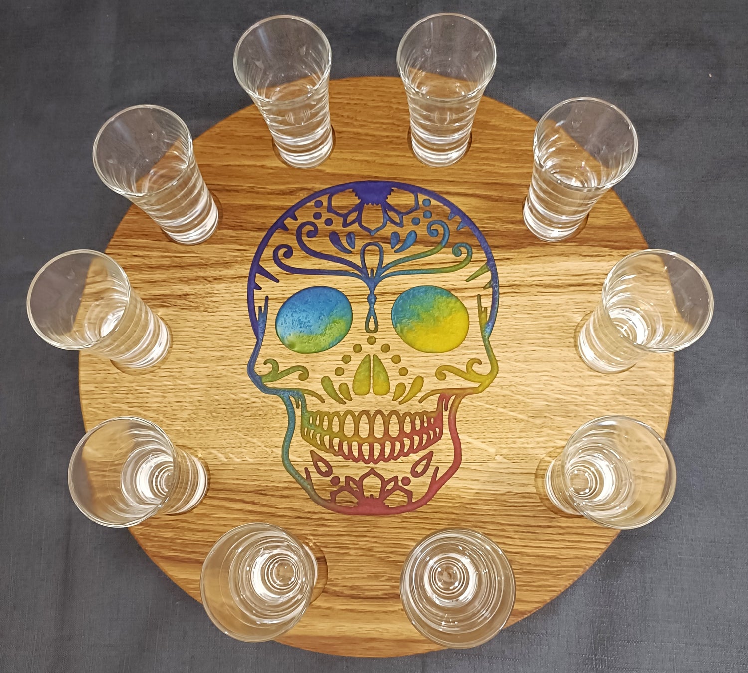 Plateau à shooter réalisé sur mesure en chêne et résine époxy