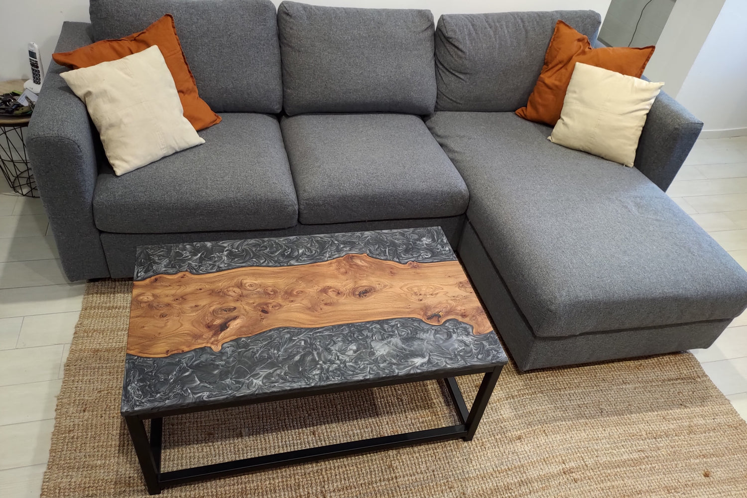 Réalisée sur mesure en Orme et résine époxy couleur grise