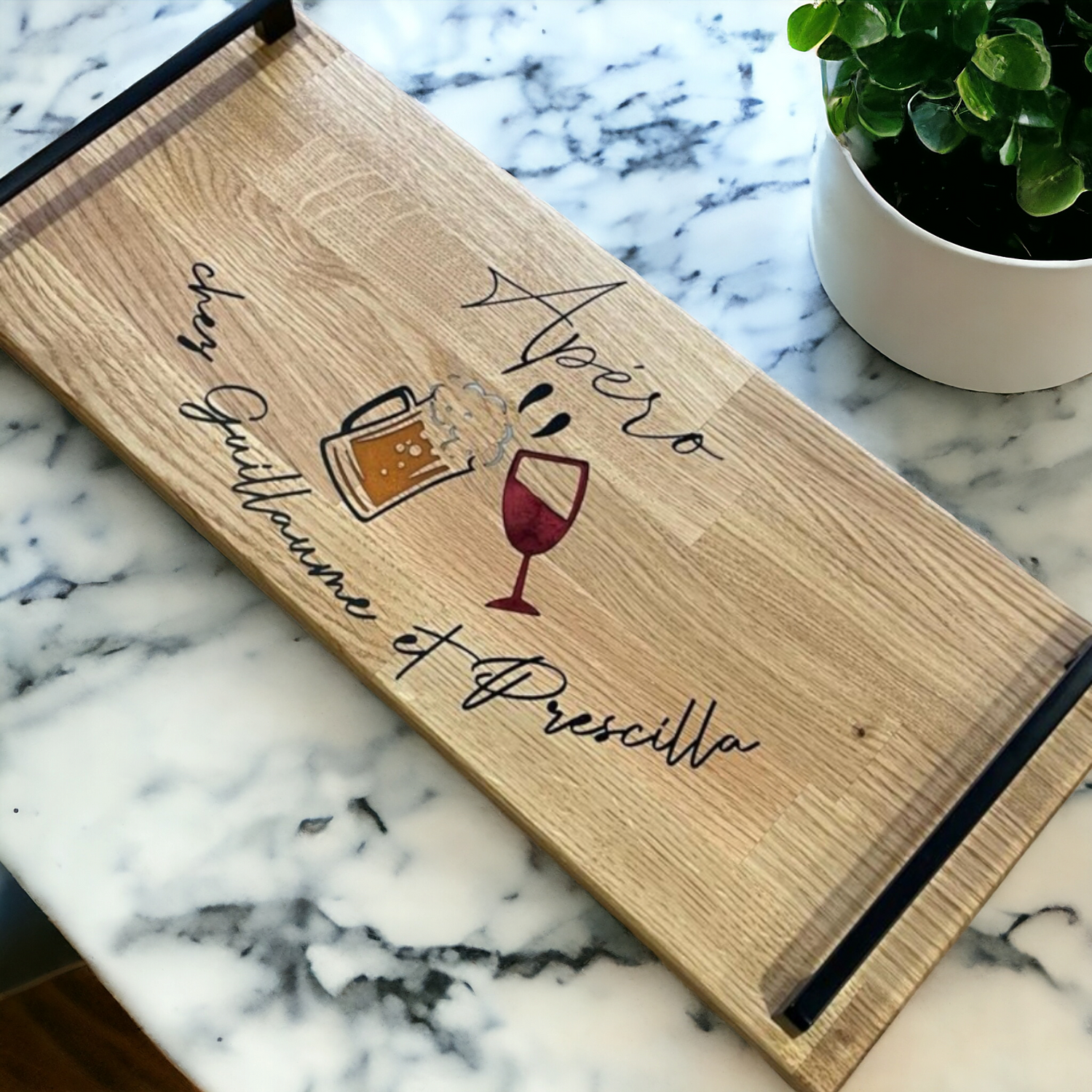 Plateau apéritif réalisé sur mesure en chêne et résine époxy